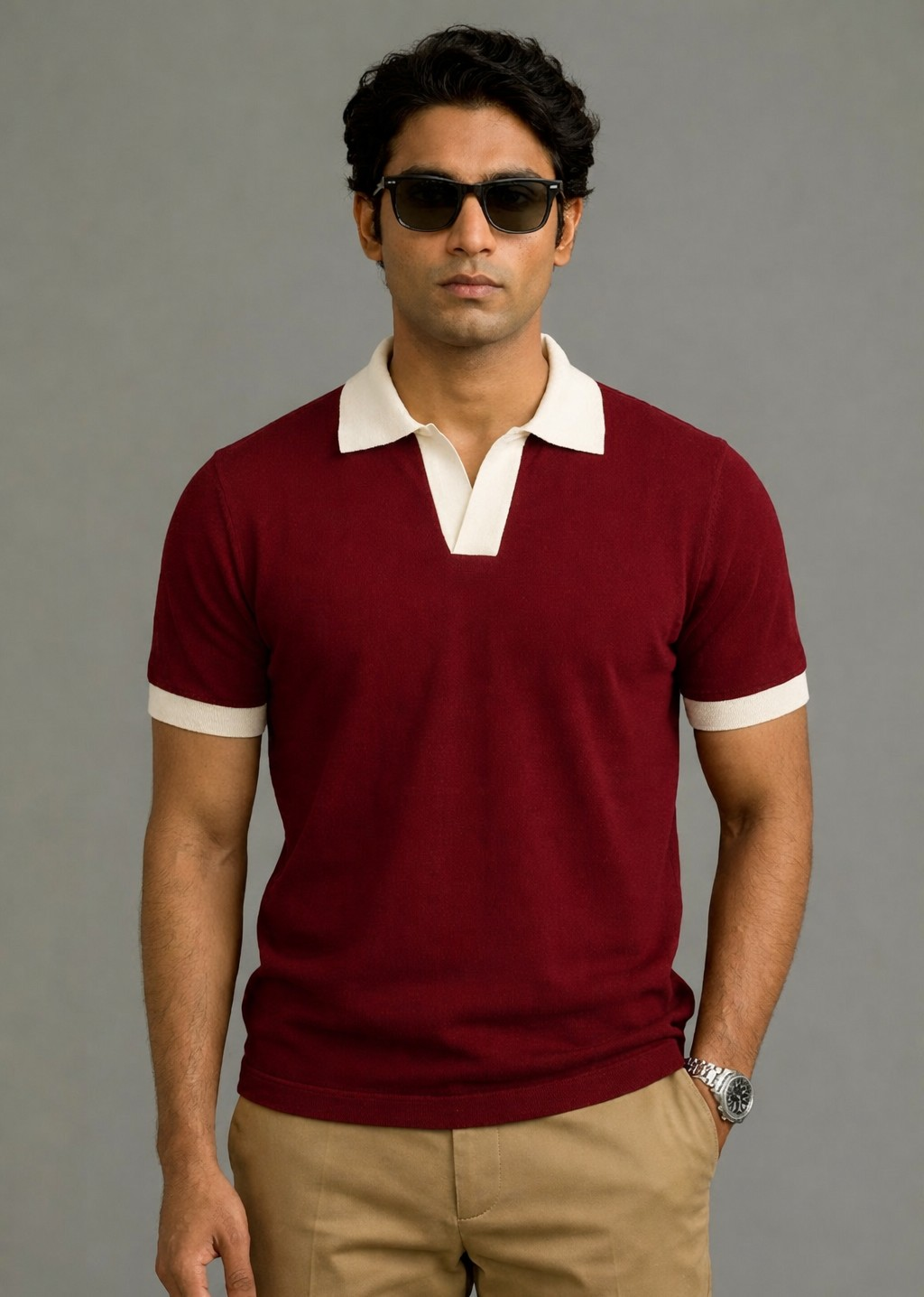Be the first to review “Contrast Johnny Collar Polo – Maroon”