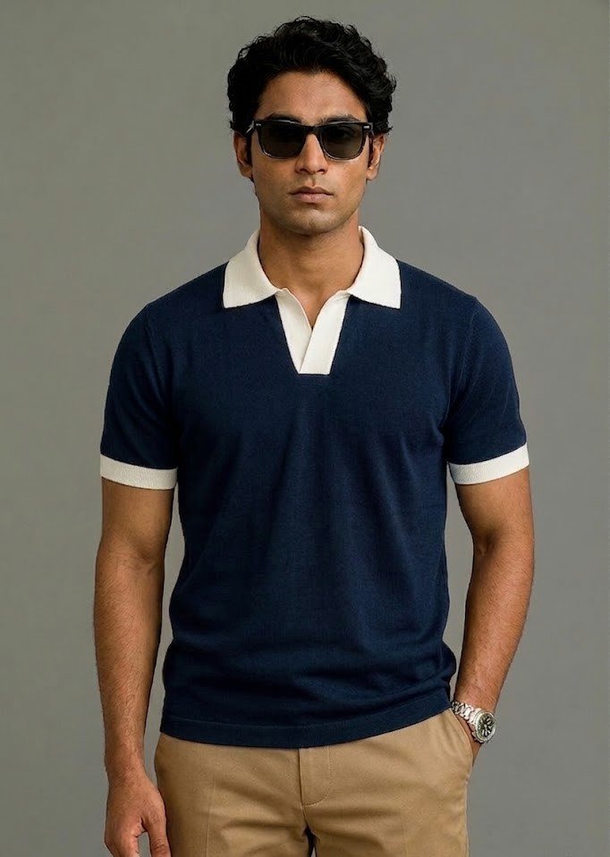 Be the first to review “Contrast Johnny Collar Polo – Navy Blue”