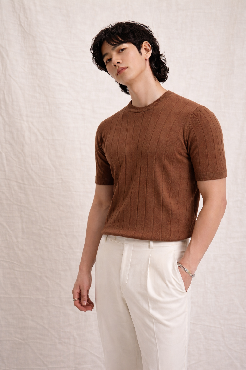 Premium Drop Needle T-shirt made from soft, breathable textured fabric for all-day comfort. Perfect for casual wear, layering, or everyday relaxed style. Designed with a classic round neck and solid colours for effortless pairing.