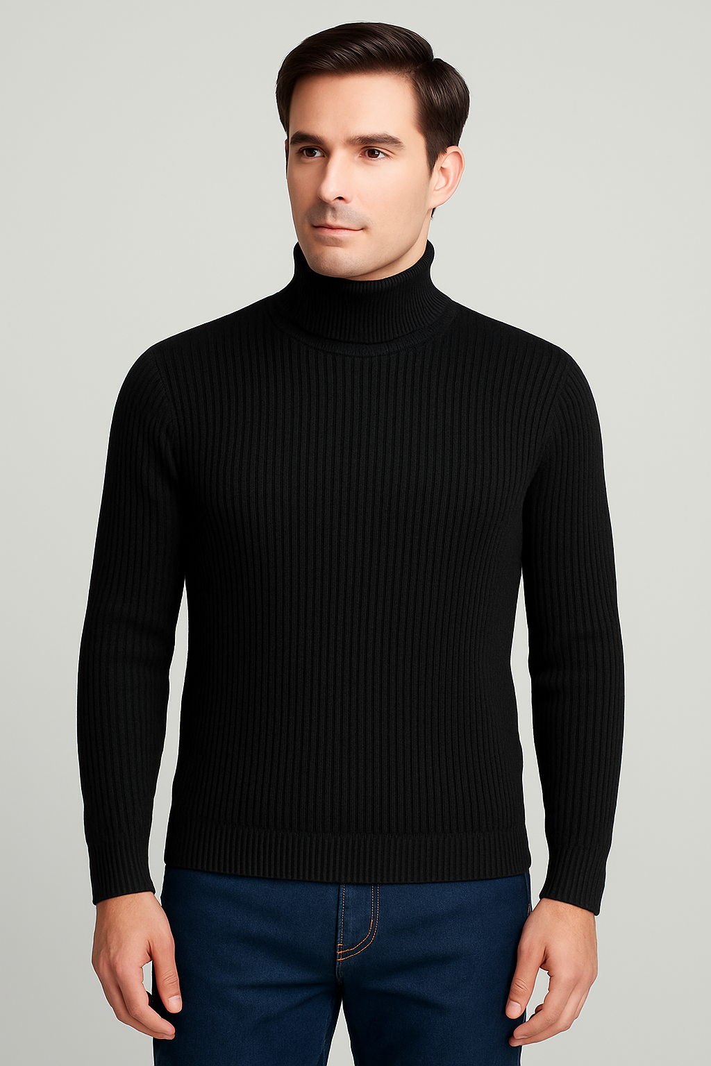 Elevate your everyday style with this sleek black high-neck sweater. Crafted from a soft, comfortable knit, it offers a smooth, refined silhouette that pairs effortlessly with both casual and dressed-up looks. The high neckline adds a touch of sophistication while providing extra warmth, making it perfect for cooler seasons. With its minimalist design and versatile black shade, this piece serves as a timeless wardrobe essential you can rely on for any occasion.